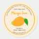 This editable label features a light background with an orange ring. In the center is an illustration of a mango. All text is editable so go ahead and change the information as well as the font size, color and style. You can also change the background and ring colors.