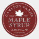 Edit your business name, address, volume of maple syrup and grade. White maple leaf with double line border.
