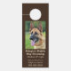 This editable door hanger features a photo of a German Shepherd dog and the details below. The text and photo are editable so change the details as well as the photo and make it your own! The background colour on both sides can be changed, as well.