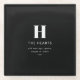 Editable Modern Monogram Name & Message | Black Glass Coaster