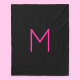 Editable Modern Pink & Black Monogram Fleece Blanket