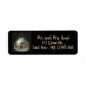 This return address label features an illustration of a mosque and moon to the left and the name and address to the right. The text is editable so go ahead and change the color, style and size of the font and make it your own. The background colour can be changed, too.