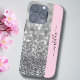 EDITABLE name Glitter Bokeh silver & baby pink Case-Mate iPhone Case