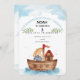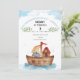 This delightful design captures the beloved biblical story of Noah's Ark with a cute watercolor ark floating on gentle blue waves, accompanied by an adorable elephant. The invitation features the uplifting scripture "God remembered Noah." from Genesis 8:1, surrounded by leafy green accents, making it perfect for a Christian-themed birthday party. Subtle watercolor clouds add a whimsical touch, creating a sweet and inviting look for your little one's special day.
