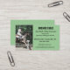 This editable business card features a photo of a horseback rider to the left. This picture is editable so you can leave it as is or substitute it for a picture of your own shop! The details of the business are to the right. The text can be changed and so can the font style, size and colour. The background colour on both sides can be changed, too. This business card can be used for horseback riding lessons, stables, or any equine business. Photo credit: Lily Banse, 2017.