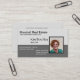 This editable business card features a two-toned design. To the right is a portrait and there is information about the company and employee on the card. On the back, there is a field for additional information.