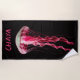 This beautiful beach towel features a pink jellyfish and an editable name at the top. You can change the name as well as the font size, style and colour.