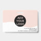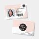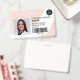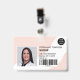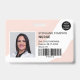 A modern, and professional editable pastel pink nurse photo id badge with logo and barcode horizontal layout.