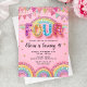 Editable Pink Rainbow Sequin 4th Birthday Invitati Invitation
