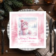Editable Pink Snowman Kids Winter Scene Pinkmas Napkin