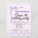 Editable purple bow birthday invitation