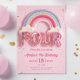 Editable Rainbow Fourth Birthday Invitation, Pink Invitation