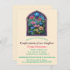This beautiful religious event invitation card features a stained glass window with flowers, leaves and a gold cross against a light neutral colour. Below are the details of the event. This card is shown for a confirmation but it can also be used for a nun's final vows, ordination anniversaries, priests' retirements, baptisms, christenings, First Holy Communion, celebration of life, etc.