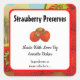 A custom canning, jam or baking label with retro script and block letters for your business or name and contact info on a background of vintage bright red strawberries.