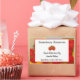 A custom canning, jam or baking label with retro script and block letters for your business or name and contact info on a background of vintage bright red strawberries.