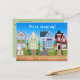 This postcard features an illustration of a row of houses. Above it , it says, "We're moving". On the back, it has a message to the reader. All text on the front and back (with the exception of store names) is editable so go ahead and change the message on the front and back as well as the font style, size and colour and make it your own!