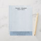 This modern, classy, editable letterhead features a soft blue background with a name and job title at the top and a darker strip at the bottom (you can change the colour of the strip) with the contact information. On the back is a field for additional information. These fields on the front and back are editable so go ahead and change the information both sides as well as the font size, style and colour. This letterhead can be used for any business or personal need.