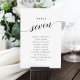 Hanging Seating Chart Cards. An elegant design in black and white. Just click the customise further link, shown under the text personalisation area on the right, and choose your custom colour background. This sign poster template makes it fast and easy to create stunning additions to your wedding décor. Signs can be decreased, there are many sizes to choose from, as well as options for custom framing and matting.