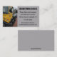 This editable business card features a photo of a tow truck to the left. This picture is editable so you can leave it as is or substitute it for a picture of your own tow truck! The details of the business are to the right. The text can be changed and so can the font style, size and colour. The background colour on both sides can be changed, too.