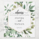 Watercolor Green Leaves Foliage Wedding Wine Label. Design features a modern style text layout. To make advanced changes, please select "Click to customise further" option under Personalise this template.