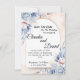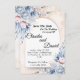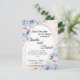 This wedding invitation features a soft and romantic floral design with pastel blue and blush pink flowers. The text is elegantly displayed on a semi-arched background, creating a sophisticated and modern look. The names are highlighted in an elegant script font, with additional details about the wedding ceremony, including the date, time, and venue. The invitation also includes a contact number for guests. The delicate watercolor-style floral accents add a timeless charm, making it a perfect choice for a dreamy wedding announcement.