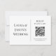 A sleek and practical RSVP card featuring a minimalist design with classic fonts on a white background. Customise it with your names, wedding website, QR code, and date to ensure guests confirm their presence on your special day.