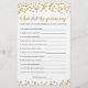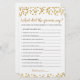 Purchase this editable game and enjoy high quality What Did the Groom Say card for your event! This is a game template, You can change the questions as you wish! Gold confetti design.