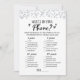 Purchase this editable game and enjoy high quality What's on your phone card for your event! This is a game template, You can change the questions as you wish! Check your phone for the items on this list. The person with the most points wins! Bridal Shower Activities! Silver confetti design.