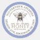 This white and blue kraft-bordered label has editable fields to comply with the requirements listed by the National Honey Board: the word honey, your business name, personal name, address, and net weight of honey in grams and ounces must be included if you sell your honey. Includes vintage bee illustration and dotted border. HONEY is written in a chiseled gold text. Common honey net weight conversions: 8oz (227g), 12oz (340g), 16oz (454g), 32oz (907g), 5lb (2.27kg).