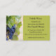 This business card features a photo of grapes on a vine to the left and to the right are the details of the business. On the back is a field for additional information. The text on both sides is editable so change the details as well as the font style, size and colour. The background colour on both sides can be changed, too.