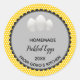 This editable yellow polka dot Pickled Eggs Label sticker features a scalloped-edged disk with the product information and an illustration of eggs. It has an yellow polka dot background. The text is editable so go ahead and change the details as well as the font style, size and color. This can be used for preserves, gifts, seals, wedding favors, bookplates etc. Art credit: RedPepper.
