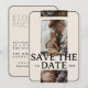 Share your wedding news with a bold and modern photo grid save the date featuring striking serif typography and structured rounded frame accents. This editorial-inspired layout blends contemporary design with timeless typography, creating a stylish and memorable announcement. The photo grid format highlights your favourite images while maintaining a clean, balanced composition. Rounded frame details add softness to the bold typography, creating a refined look that feels both modern and sophisticated. The strong serif lettering ensures your date stands out clearly while maintaining an elevated, fashion-forward aesthetic. Perfect for modern couples, city weddings, or editorial-inspired celebrations, this design offers a polished and versatile look that pairs beautifully with both minimalist and romantic wedding themes.
