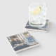 The coasters are gorgeous, a quality feel and heavy weight. They look like a precious archeological find. A rustic stone juxtaposed with a modern floral black and white print. I like the way the print goes slightly imperfect on the cut stone edges giving them a kind-of natural beauty.