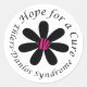 Ehlers-Danlos Syndrome Hope for a Cure Round Sticker featuring a black flower with a pink zebra striped flower centre.