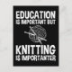 Education Is Important But Knitting Is Importanter. This funny knitting design would be a great knitting gift idea for the knitter in your life. Perfect for anyone who loves to knit and loves yarn! If knitting is your hobby, you're a yarn lover and you love crafting with knitting needles and balls of yarn, then this knitter accessory is for you!