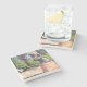 The coasters are gorgeous, a quality feel and heavy weight. They look like a precious archeological find. A rustic stone juxtaposed with a modern floral black and white print. I like the way the print goes slightly imperfect on the cut stone edges giving them a kind-of natural beauty.