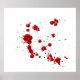Silly and humourous faux fake deep red blood splatters and drops on crisp white background. Makes a funny gag gift, part of a halloween costume, or just to make people look twice.