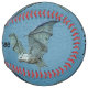 This custom softball is blue with eerie flying blue bats that have a three dimensional look with white faces. Customise the text on the front and back with the templates.