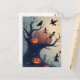 An atmospheric, eerie Halloween scene. A gnarled tree is filled with glowing jack-o'-lanterns, skeletal figures, and black crows against a misty sky. Perfect for a spooky holiday mood