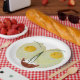 A FACE FORMED FROM FOOD TO LOOK LIKE AN EGG FACE