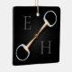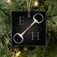 For equestrians and horse lovers, this ornament features a trompe l'oeil illustration of a copper mouth eggbutt snaffle bit between two monograms. You can either use your first and last initials of your name or the initials of a couple.