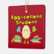 Eggcellent student text is a play on the word excellent and this egghead surrounded by books is a funny design for students at back to school, birthdays, holidays and graduation.