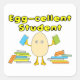 Eggcellent student text is a play on the word excellent and this egghead surrounded by books is a funny design for students at back to school, birthdays, holidays and graduation.