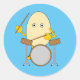 An egghead playing a drum set is a funny design for percussion musicians, students and teachers.