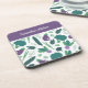 Eggplant and Broccoli Pattern with Name Purple Coaster