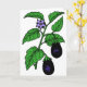 The eggplant is an interesting plant and kind of unusual. This design is a wonderful example of an eggplant with the the fruit hanging from some green leaves and also a purple flower. This eggplant design looks great on these greeting cards