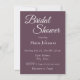 Simple style, bridal shower invitation that features a trendy, eggplant colour background along with the future bride's name and party event time and location, contact, etc., printed in white, stylised lettering. Personalise your invitation by replacing text with your own bridal shower information. Select your invitation paper style and quantity.