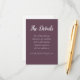 Trendy eggplant colour, vertical wedding enclosure card with white, stylised script that gives the instructions to find all the details of the couple's wedding on their wedding webpage. Customise your enclosure card by editing text as desired and replacing webpage name with your own.