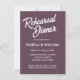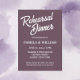 Simple style wedding rehearsal dinner invitations that feature white, stylised lettering on a trendy, eggplant colour background. Edit your invitations by replacing names, date/time, location, and contact info with your own. Select your invitation size and paper style.