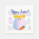 Cute little egg-shaped bunny sitting around a zillion eggs of all pastel colours!